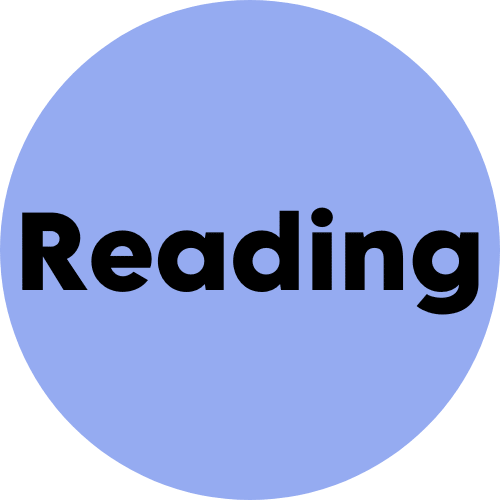 Bright blue circle with the text Reading inside in black.