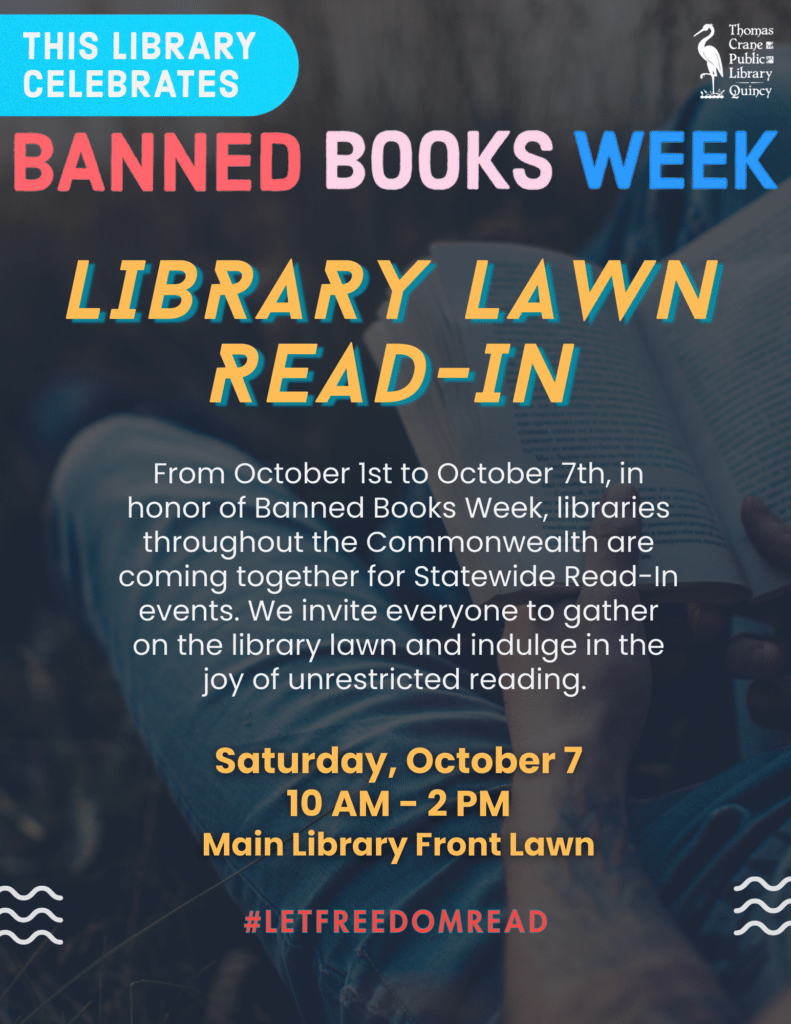QUINCY — Director Sara Slymon and the Thomas Crane Public Library invite members of the community to join as the library takes part in a statewide read-in as part of Banned Books Week.