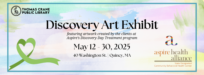 Art Exhibits at the Thomas Crane Public Library returns with a special showcase featuring artwork created by the clients at Aspire Health Alliance’s Discovery Day Treatment program for Mental Health Awareness Month in May! The exhibit will run from Monday, May 12 until Friday, May 30, 2025 on the top floor of the Main Library on 40 Washington St.!
